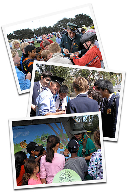 We are a performance troupe born of the rich 112 year Melbourne Tram Conducting tradition. We continue the rites of bag and tickets. The Connies bring along a yarning, poetic and singing trammie tradition. We dress in uniforms that span the era’s of tram fashion, and swing beautifully crafted antique leather conductors bags filled with cards and yarns.